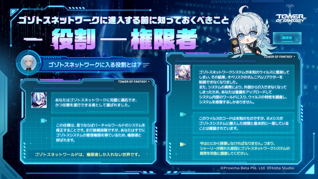 ゴゾトスネットワークシステムのサイバーダウンは皆の心を動揺させ、ハガードは現在、特別緊急状態に入っている。シャーリーが昏睡状態に陥った真相を解明するため、主人公はハガードの権限者としての使命を引き受け、ゴゾトスネットワークが構築したバーチャルワールドに入り、異常な原因を調査することにした。