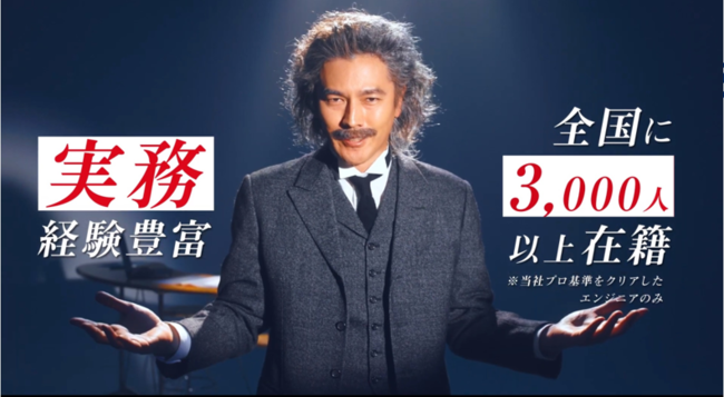 この度、当社イメージキャラクターである俳優の要潤さんを起用した新CMを制作いたしました。過去には、当社CMにて海の生物ジュゴンに変身をしたこともある要潤さんが、今回はアインシュタインをモチーフにした「要シュタイン博士」の姿に変身し、ITエンジニアに対してフリーランスとして成功するための方程式や、企業担当者に対して優秀なエンジニア探しの最適解を導き出します。