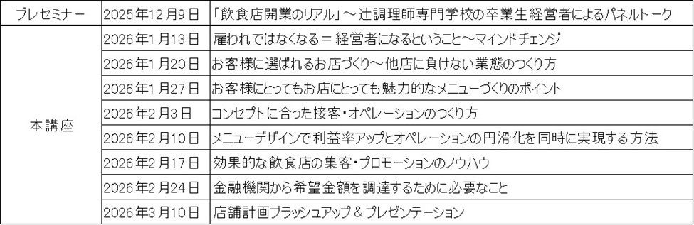 12月にプレセミナー1回、2026年1月より本講座8回実施