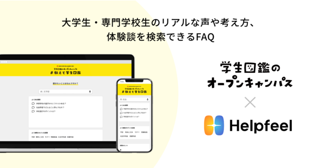 中学生・高校生の進路選びをサポートするプログラム「学生図鑑のオープンキャンパス」が、検索型FAQ『Helpfeel』を導入!