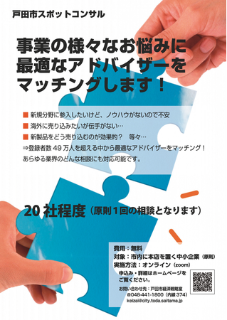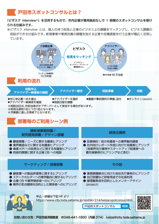 申込:ホームページにて受付(https://www.city.toda.saitama.jp/soshiki/214/keizai-spotconsul.html)