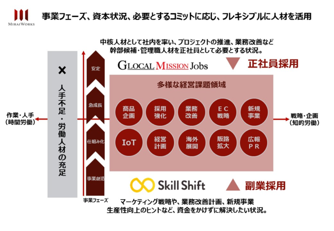 当社は、地方転職プラットフォーム『Glocal Mission Jobs(GMJ)』(https://glocalmissionjobs.jp/)と地方副業マッチングプラットフォーム『Skill Shift』(https://www.skill-shift.com/)を運営し、経営幹部や事業承継者、専門ニーズのある地域中小企業が、都市部プロフェッショナル人材を正社員または副業として活用するための支援を行っています。