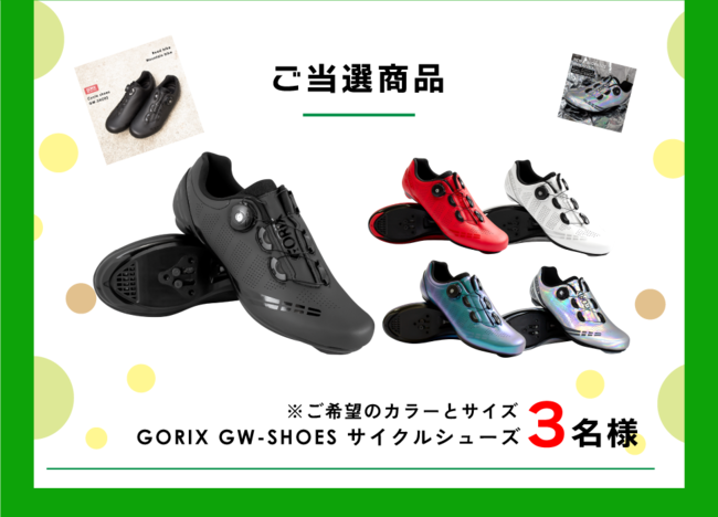 新商品の「ダイヤル調節式サイクルシューズ(GW-SHOES)」が3名に当たる