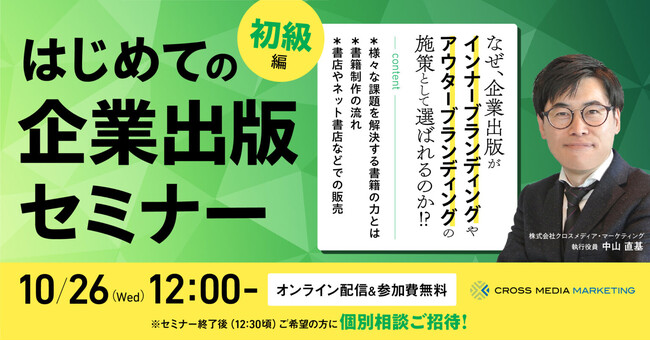 株式会社クロスメディア・マーケティングは10月26日、「はじめての企業出版セミナー」を開催いたします。