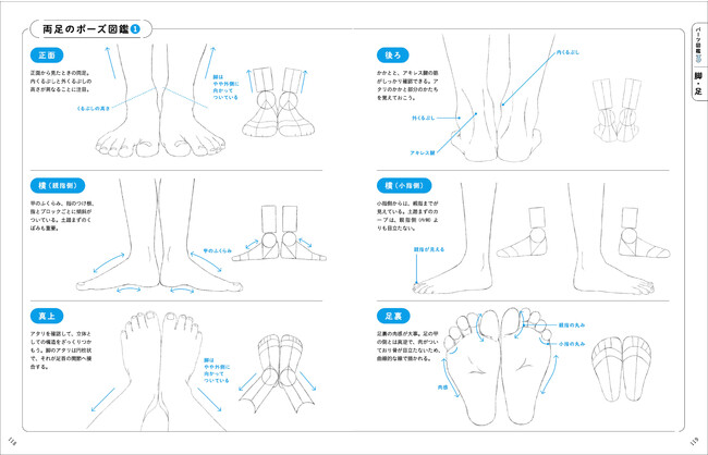 パーツ図鑑1:顔・髪型(顔・目・眉・鼻・口・耳・表情・髪型)パーツ図鑑2:腕・手(腕・腕のポーズ・腕組み・手・手のポーズ)パーツ図鑑3:脚・足(脚・足)パーツ図鑑4:胴体・全身(全身・重心・座り・寝姿・ボディライン)パーツ図鑑5:服装(服・メイク・アクセサリー・靴)