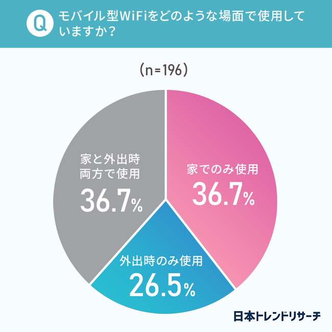 家ではモバイル型Wi-Fiを使わずに、「外出時のみ使用」という方が26.5%という結果になりました。