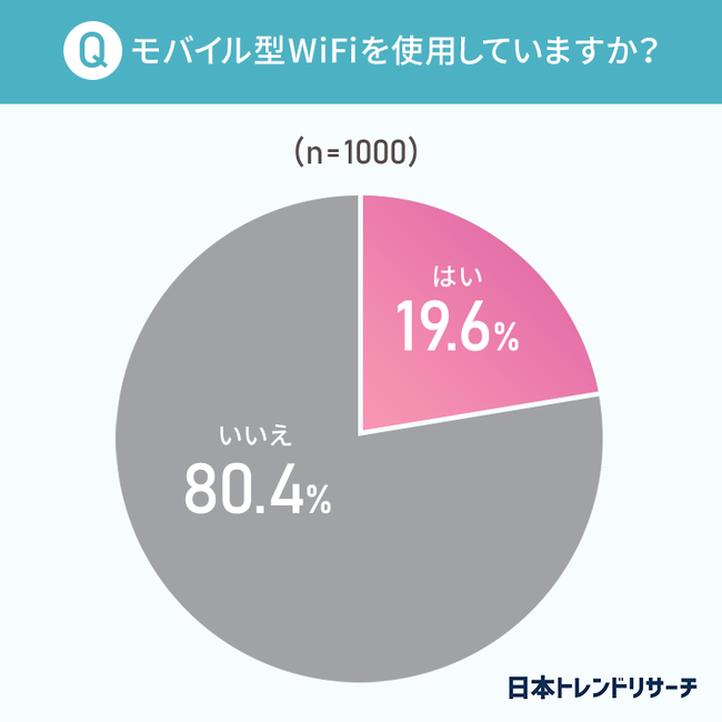 「はい」と回答したのは19.6%と、約2割の方がモバイル型Wi-Fiを使用しているようです。