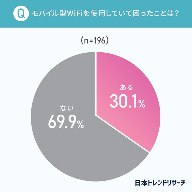 モバイル型Wi-Fiを使用していて困ったことがあるかについて聞きました。