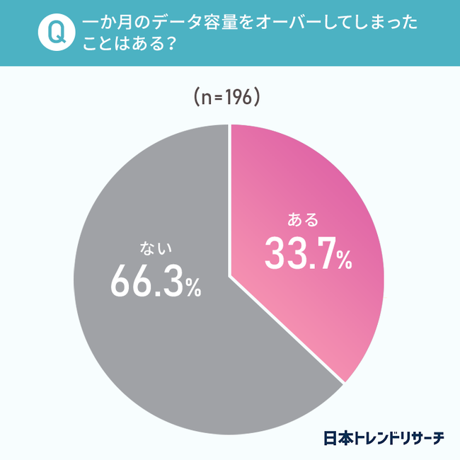 【モバイル型Wi-Fi】使用している33.7%が「データ容量をオーバーしてしまったことがある」