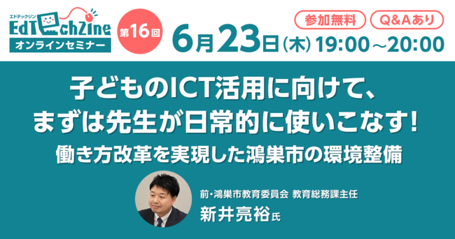 先生の働き方改革を実現した鴻巣市の環境整備事例を紹介!EdTechZineオンラインセミナーが6月23日に開催