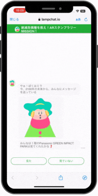 クラウドサーカス株式会社(本社:東京都新宿区、代表取締役:北村健一)は、パナソニックグループの総合情報受発信拠点「パナソニックセンター東京」1階“Panasonic GREEN IMPACT PARK”にて実施される環境教育イベント「絶滅危惧種を救え!ARクイズラリー in Panasonic GREEN IMPACT PARK」に、『Cloud CIRCUS』のARプロモーションツール『LESSAR(レッサー)』と、チャットボットツール『IZANAI(イザナイ)』が採用されることをお知らせいたします。