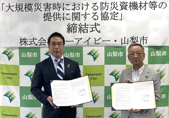 株式会社ジーアイビー、山梨県山梨市と「大規模災害時における防災資機材等の提供に関する協定」を締結