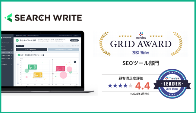 株式会社PLAN-Bが提供する運用型SEOツール「SEARCH WRITE(サーチライト)」がITreview Grid Award 2023 Winter「Leader」を受賞