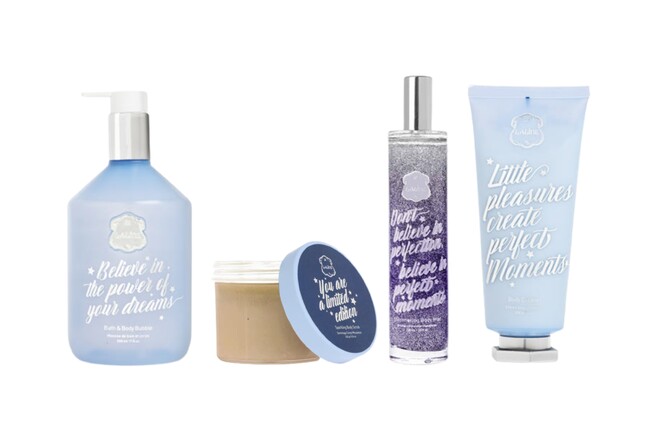 発売商品:バス&ボディバブル 500ml・ボディスクラブ 240g・チューブボディクリーム 200g・スパークリングボディミスト 100m・ハンドクリーム100g