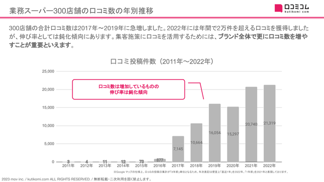 ・口コミ数は年々増加しているものの、伸び率は鈍化傾向にある
