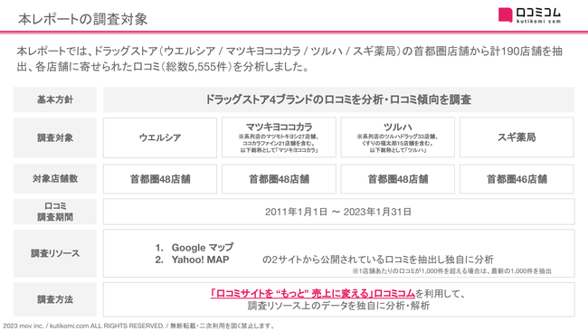 ドラッグストア4ブランドの口コミ分析レポートを口コミコムが公開
