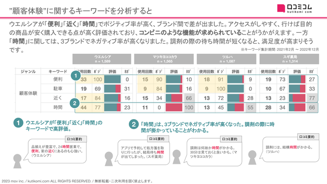 ・ドラッグストアの口コミで差が出たワードは「便利」「近く」「時間」であること