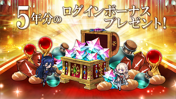 新規登録された全てのユーザー様に、「5年分のログインボーナス」に相当する豪華アイテムをプレゼントします。