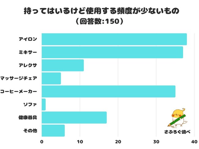 持ってはいるけど使用する頻度が少ないものをアンケートにて調査したところ、1位は「アイロン」でした。