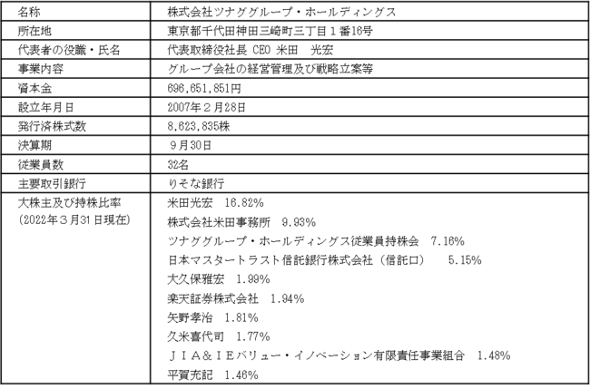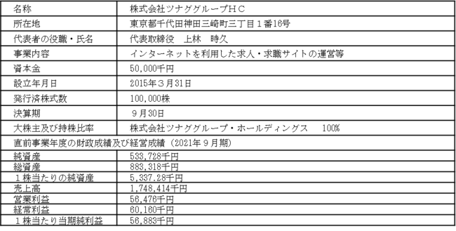 会社分割1.は、当社とツナググループHCとの間で無対価にて実施します。