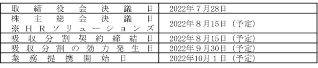会社分割2.は、当社を分割会社、HRソリューションズを承継会社とする吸収分割(当社については簡易吸収分割)方式です。