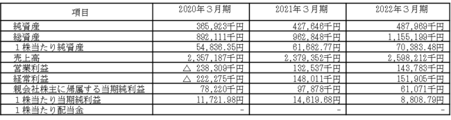 吸収分割承継会社の最近3年間の財政状況及び経営成績