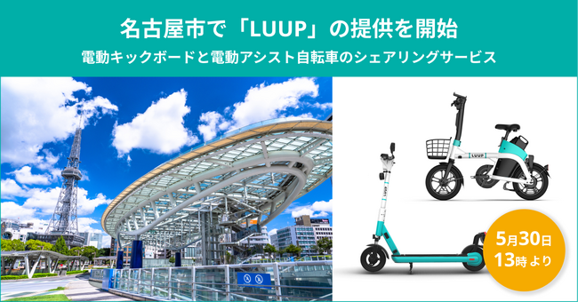 名古屋市で電動キックボードや電動アシスト自転車のシェアリングサービス「LUUP」の提供を5月30日より開始