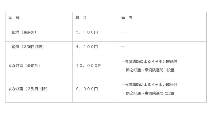 加えて、行列を間近でじっくり観覧したいという御要望に応えるため、本年新たに、最前列のお席を指定できる席種を設けました。