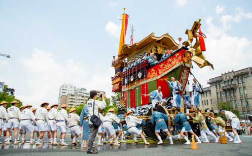 7月1日から1ヶ月間にわたって諸行事が繰り広げられる日本三大祭の一つ祇園祭では、 前祭の7月17日(月)と、後祭の7月24日(月)に山鉾巡行が行われます。