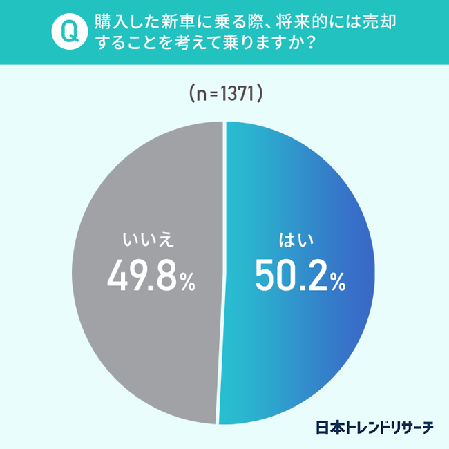 50.2%と約半数の方が、購入した新車に乗る際、将来的には売却することを考えて乗っているようです。
