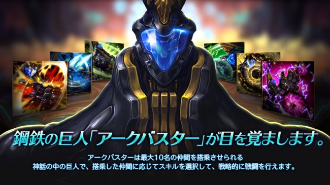 今回のアップデートで新しく追加されるのは、第5幕で登場したアークエンジェルの変形した巨大な決戦兵器、「アークバスター」でございます。真の姿になったアークエンジェルは、搭乗している超越仲間のジョブに該当するスキルを最大3つまで装着することができます。また強化に必要なパーツはデイリーダンジョンで獲得することができます。さらに、レベル5上がるごとに外見が変化いたしますので、ぜひ強化していただきその雄々しい姿をご覧ください。