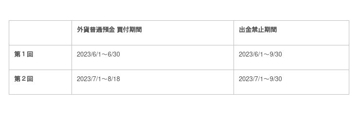 ●各出金禁止期間中に、いずれの外貨普通預金口座からも出金を行わないこと