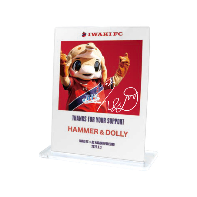 いわきFCホームゲームの各試合ごとに選手個人をサポートしていただけるシステムです。サポート金額は、選手本人とチーム強化費に充てられます。今回は「ハーマー&ドリースペシャルDAY」限定で、ハーマー&ドリーへのサポートを受け付けます。サポートいただいた方へは、特典として今回完成した「ハーマー&ドリーサイン入りフォトパネル」をプレゼント。さらに、プレサポを通じてハーマー&ドリーをサポートいただいた方のうち、抽選で20名様をサイン会へ招待します。