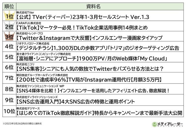 【2023年1〜3月累計】広告媒体・マーケティング資料の人気ランキングをメディアレーダーが発表!