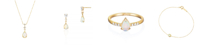 ゆらゆらと移り変わる柔らかい輝きが魅力のオパールを主役にあしらったネックレスは、夜が明ける前のオーロラが魅せるほのかな煌めきを表現。つややかなカボションカットのオパールをシンプルに添えたピアスやリング、ブレスレットも登場し、魅惑的な石の色合いがアクセントとして輝きます。「希望の石」として知られるオパールが、身に着ける人のこれからの日々をそっと見守ってくれるはず。