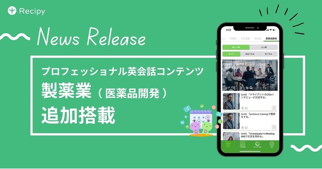 ビジネス英語にも強い英語学習アプリ『レシピー』が、プロフェッショナル英会話コンテンツに「製薬業(医薬品開発)」を追加搭載 - 株式会社ポリグロッツ( POLYGLOTS )