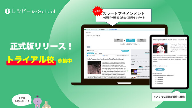 レシピー内の記事や動画を選ぶだけでAIが授業や宿題に活用できる単語、内容理解問題、