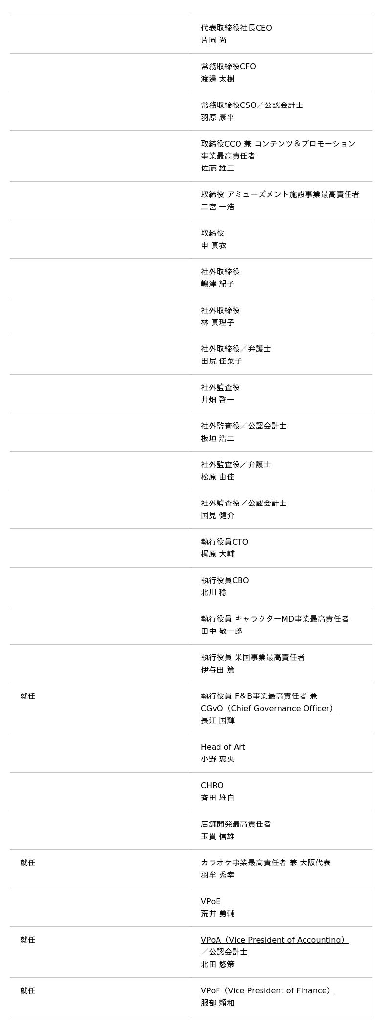 株式会社GENDA(本社:東京都港区、代表取締役社長CEO:片岡 尚、以下「当社」)は、2026年4月1日付で重要人事を執り行いました。今後の当社経営体制をお知らせいたします。