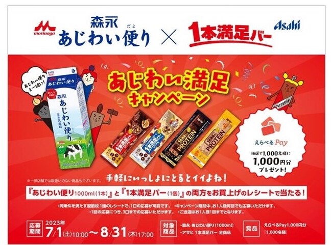 アサヒグループ食品株式会社(本社 東京、社長 川原浩)は、「1本満足バー」の販売促進施策として、森永乳業株式会社(本社 東京、社長 大貫陽一)と、『あじわい満足キャンペーン』を7月1日から開始します。