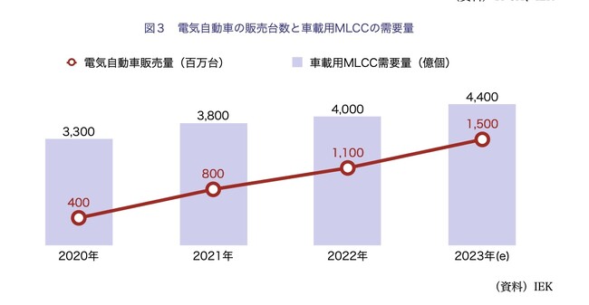 一方、先進運転支援システム(ADAS)、自動車向け高性能計算(HPC)など車載用電子製品向けはプラス成長となった。電気自動車(EV)に使用される▽パネル、▽PCB、▽受動部品などの数量はその他の電子製品より数倍多いため、今後の需要増が期待できる。また、その他の電子製品の需要も下半期(7〜12月)に回復し、台湾の電子部品主要6産業の23年通年の生産額は前年比3.6%減の2兆3000億元となる見通しだ。