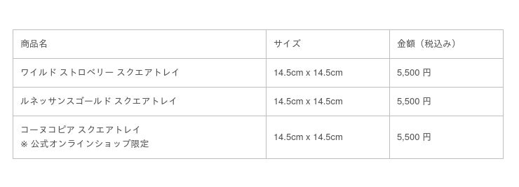 フィスカース ジャパン株式会社(所在地:東京都千代田区、代表取締役社長:Christophe Ranchoux)が展開する、英国王室御用達ブランド、「ウェッジウッド」より、人気の「ワイルド ストロベリー」、クラシックな「ルネッサンス ゴールド」、そして公式オンラインショップ限定、「コーヌコピア」のスクエアトレイを発売いたします。