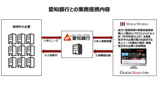 今回、地方中小企業へ経営幹部や事業承継者として転職を希望する都市部人材16,000名以上が登録する『Glocal Mission Jobs(GMJ)』と提携することにより、愛知銀行のお取引先の人材課題解決の強化を目指します。