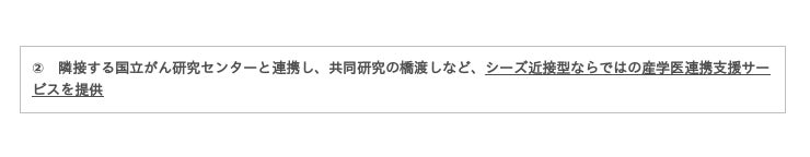 2. 隣接する国立がん研究センターと連携し、臨床試験の橋渡しなど、シーズ近接型ならではの産学医連携支援サービスを提供
