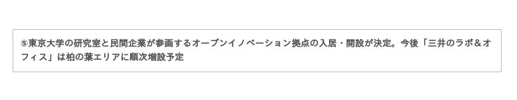 5. 東京大学の研究室と民間企業が参画するオープンイノベーション拠点の入居・開設が決定※2。