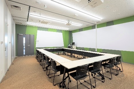 入居テナントとLINK-J会員専用で最大48人収容可能。ミーティングやイベント開催など社内外の活発なコミュニケーションを促進