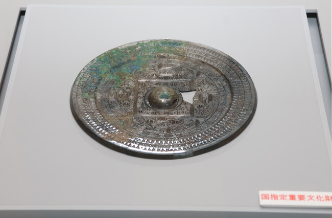 展示室に入るとまず目に飛び込んでくるのは、安満宮山古墳から出土した「青龍三年」銘方格規矩四神鏡。邪馬台国の女王・卑弥呼が魏から贈られたものの一部という説があり、国の重要文化財にも指定されている高槻を代表する文化財です。