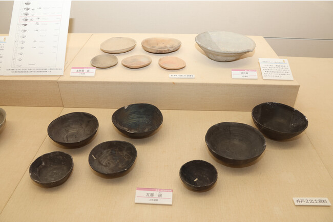 また、同展では、平成23年の開館以降これまで一度も展示したことがなかった「瓦器」と呼ばれる素焼きの土器を展示。平安後期から鎌倉時代の遺跡上牧遺跡と宮田遺跡から出土したもので、その形状や作り方の違いなどから日本の瓦器の編年研究が始まるきっかけになった重要な品です。