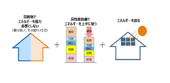 ※ZEH(ゼッチ)とは、ネット・ゼロ・エネルギー・ハウスの略。住宅の外皮の断熱性能等を大幅に向上させるとともに高効率な設備の導入により、年間の一次エネルギー消費量の収支がゼロとすることをめざした住宅。