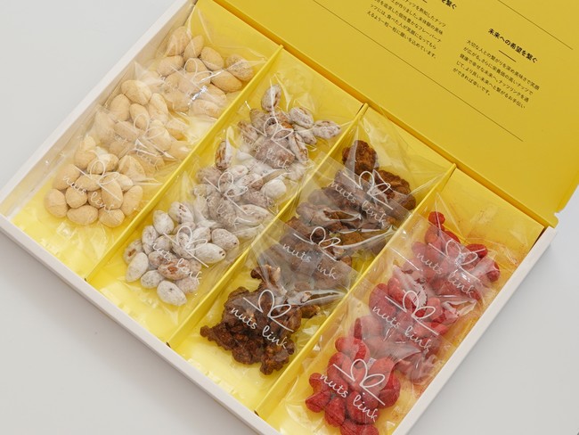 「nuts link」のナッツはただのナッツではありません。あなたが想う、「おいしい」を届けたい人とずっと繋がることができるように。そしてさらに大きな繋がりが継続的に広がっていくようにと願いが込められたナッツなのです。