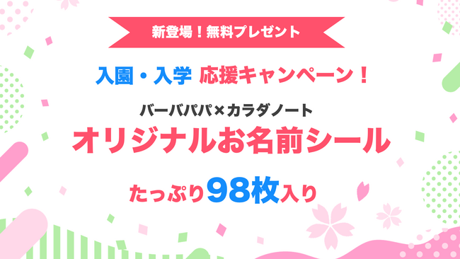 この度の新たなオリジナルデザインのお名前シールを製作し、プレゼントの提供を通じて入園・入学という家族の門出を祝いライフイベントを応援してまいります。